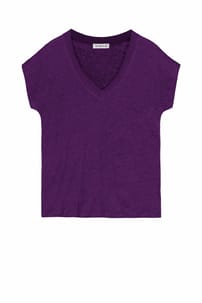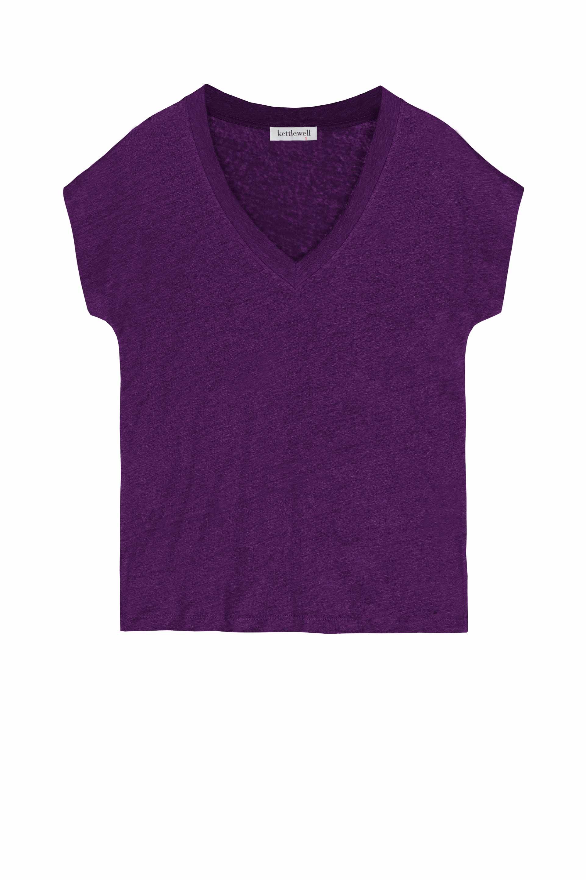 A relaxed fit, deep V-Neck linen tee in airy pure linen knit. Short dolman sleeves and side hem split details add interest to this simple longer line style.