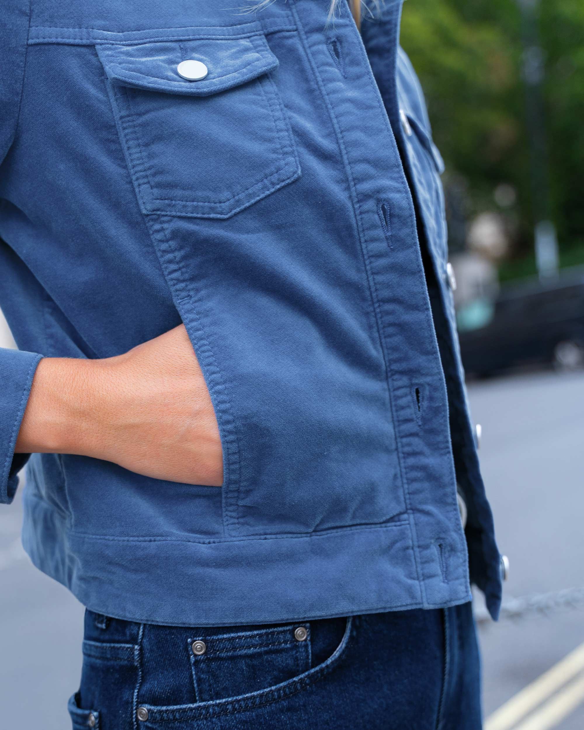 This velvet jacket is designed in a fitted, collared shape with a fully buttoned front, it features front and side pocket detailing, buttoned cuffs and subtle seam shaping through the front and back for a beautifully flattering fit. Effortlessly versatile, it’s the perfect blend of smart and casual, making it just as suited to festive outings as it is to everyday wear. Crafted from soft cotton velvet, the fabric has a gentle sheen that catches the light while offering a comfortable, breathable feel.