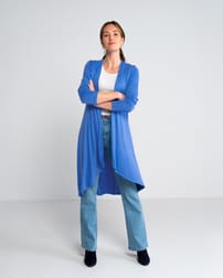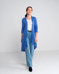 This long length wrap with long sleeves and front 'waterfall' detail is crafted from soft viscose knit for comfort and ease. A versatile piece which can be dressed up or down depending on the occasion.