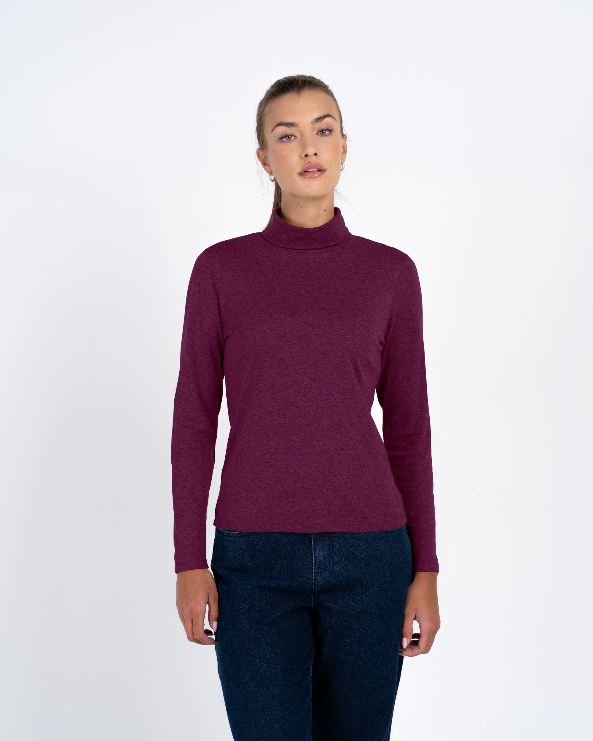 A wardrobe essential designed with a classic roll neck and long sleeves. This fitted top features a longer length that smooths beautifully under layers. Crafted from a luxurious wool modal blend, the fabric provides a silky feel with natural warmth and breathability. Its gentle stretch ensures ease of movement and comfort, while maintaining a smooth, flattering finish.
