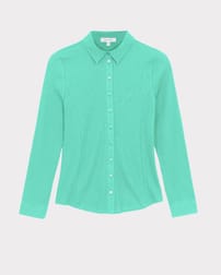 This soft cotton fitted ribbed shirt features a curved hemline and princess seam detail front and back for additional shaping as well as woven collar, cuffs and placket.