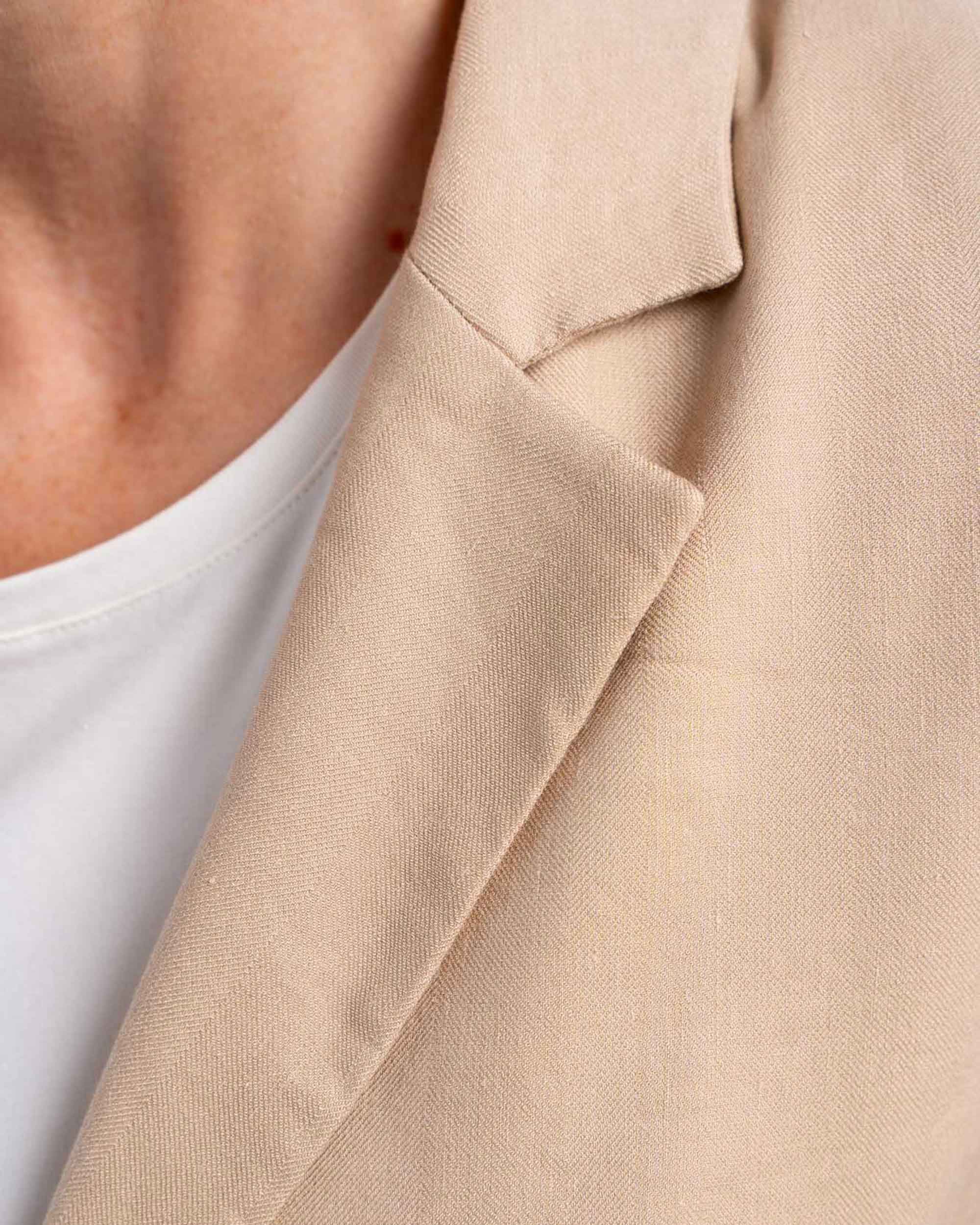 Our soft-tailored blazer, made from a textured linen / viscose blend fabric. With a subtle herringbone weave and small amount of elastane for added comfort and stretch