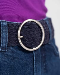 - Plaited suede belt with round buckle detail