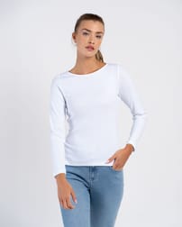 An everyday essential that features a classic boat neckline and full-length sleeves designed for effortless styling, this fitted top combines comfort and versatility. Crafted from soft and breathable cotton rib with gentle stretch, it offers a smooth, comfortable feel against the skin and a flattering fit. The fine rib structure adds subtle texture and a streamlined silhouette. Perfect for layering or wearing on its own.