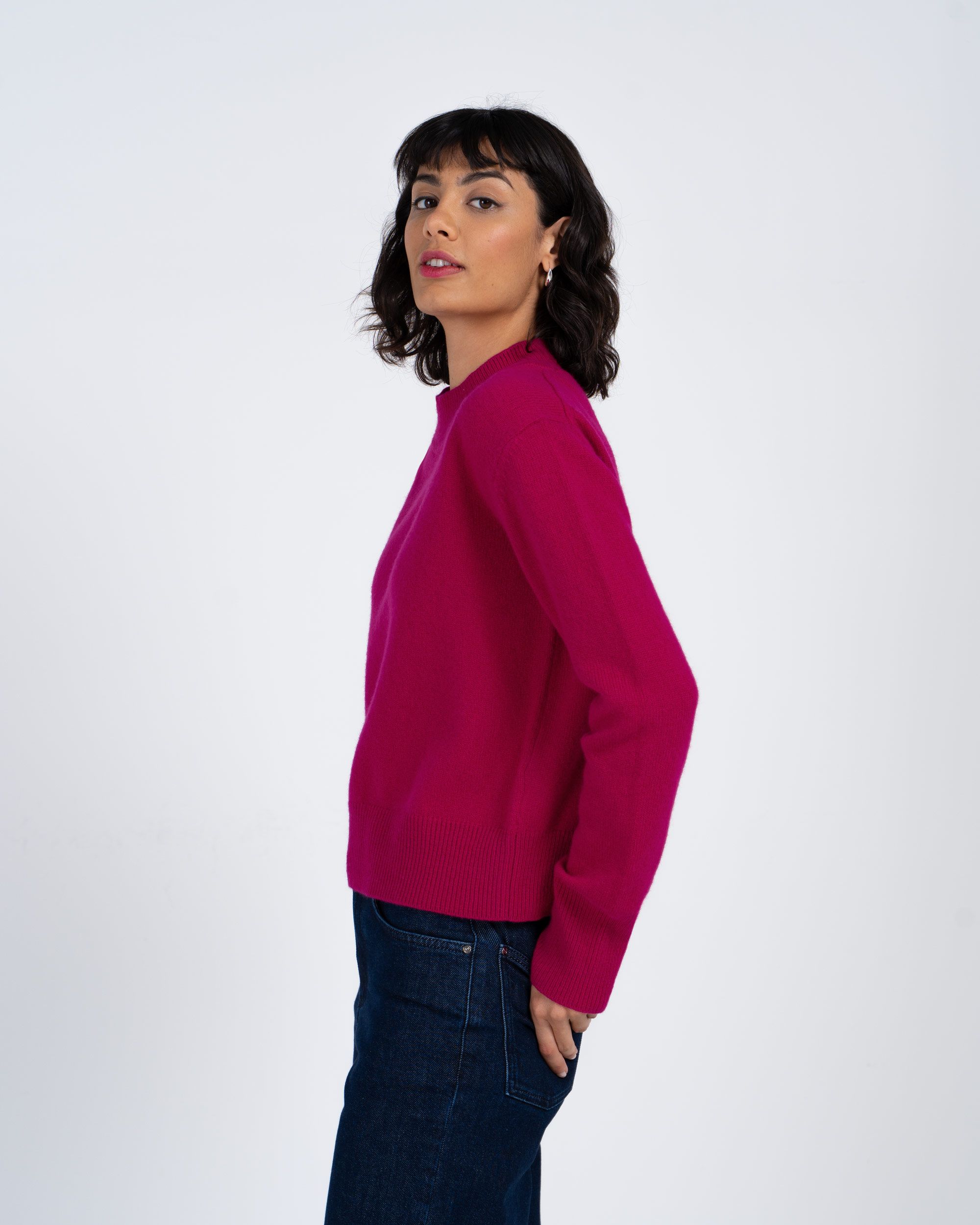 A true wardrobe favourite, crafted in beautifully soft carded merino wool. The short mock neck and slight drop shoulders create an effortless silhouette, while the ribbed cuffs, hem and neckline add subtle detail and shape. With its straight body and regular fit, it feels easy to wear.