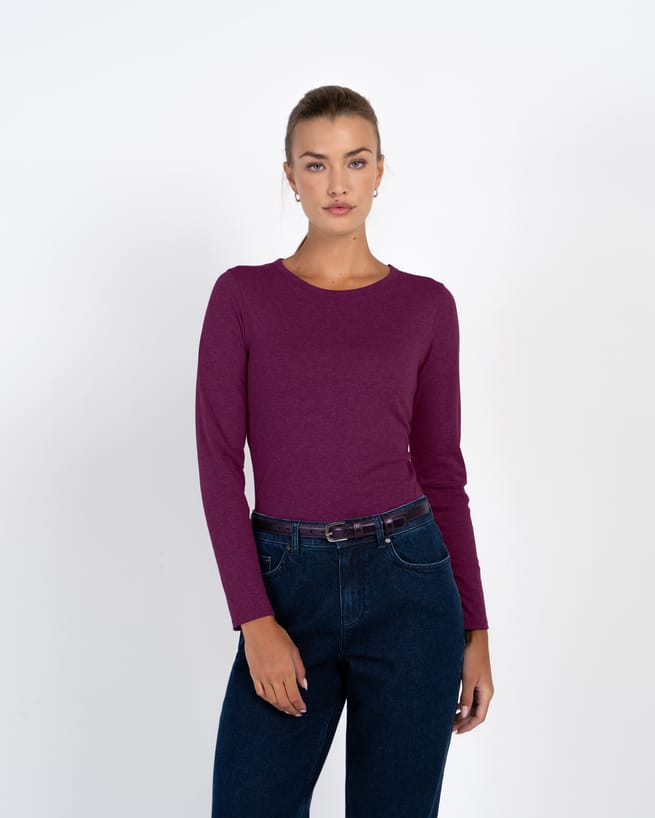 A versatile layering piece with a classic crew neckline and long sleeves. With a fitted silhouette, this top creates a smooth, flattering base for any outfit. Crafted from a premium wool modal blend, the fabric feels luxuriously soft against the skin, offering gentle warmth, breathability and a touch of stretch for ease of movement.